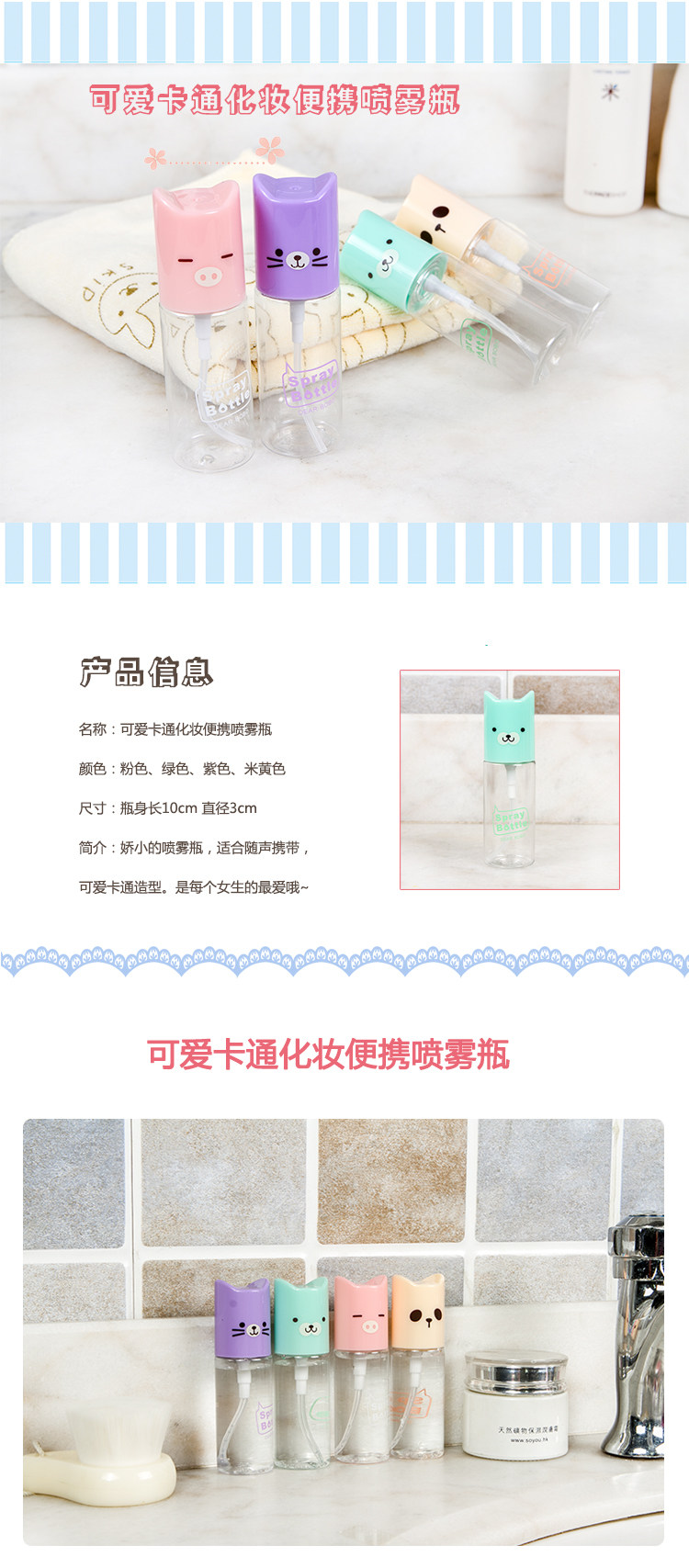 Petite spray bottle for portable cute cartoon characters, is every girl's favorite oh