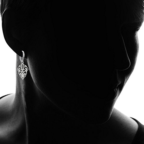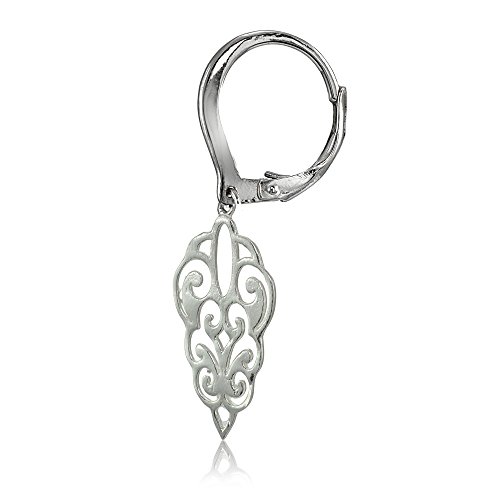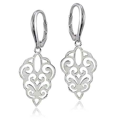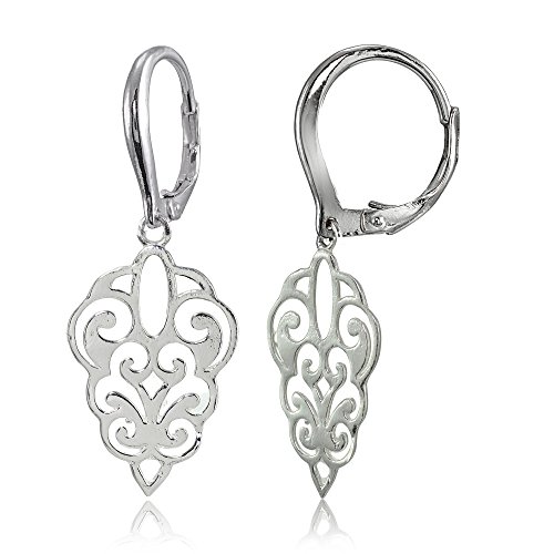 Sterling Silver High Polished Filigree Dangle Leverback Earrings