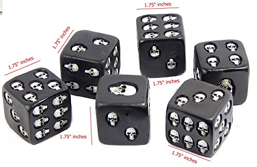 Bellaa Decorative Black Skull Dice Set of 6 Big 1.75" Inches Each