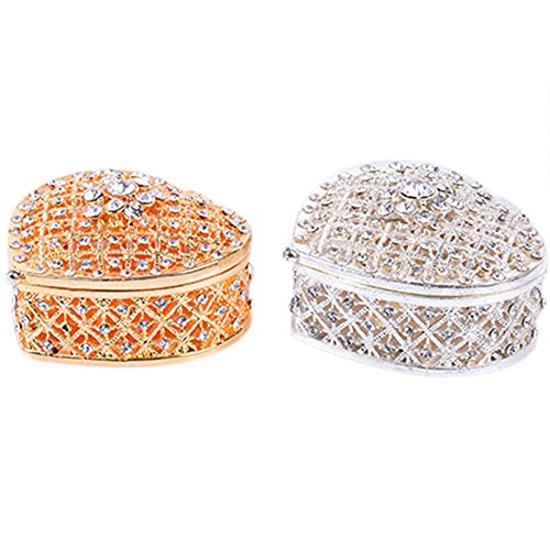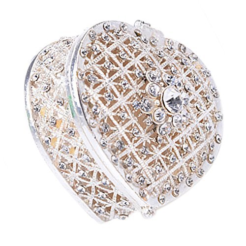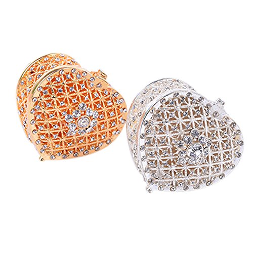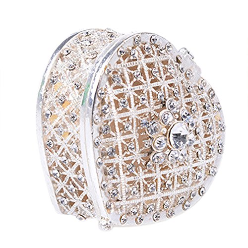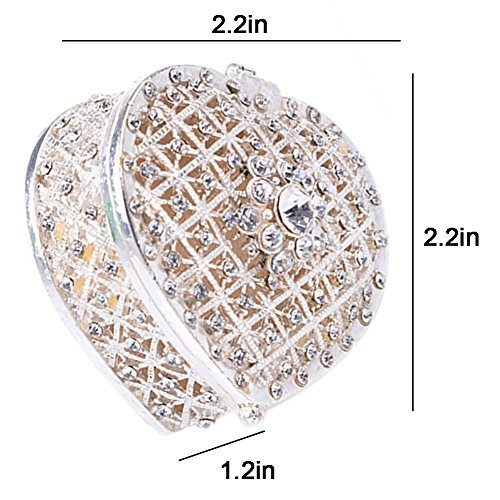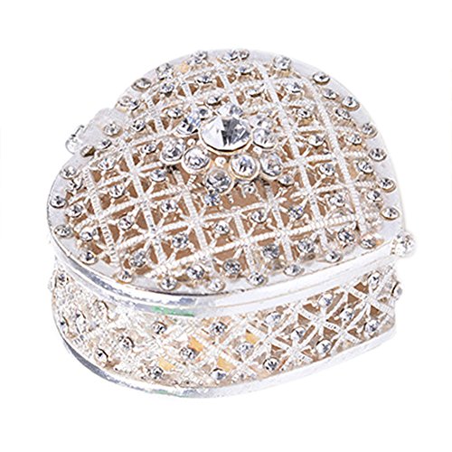 Women Cute Jewelry Box Heart Hollow with Shiny Diamond Small Jewelry Holder Case(Silver)