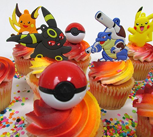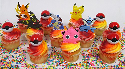 POKEMON Birthday Cupcake Topper Set Featuring Pokemon Characters and Decorative Themed Accessories