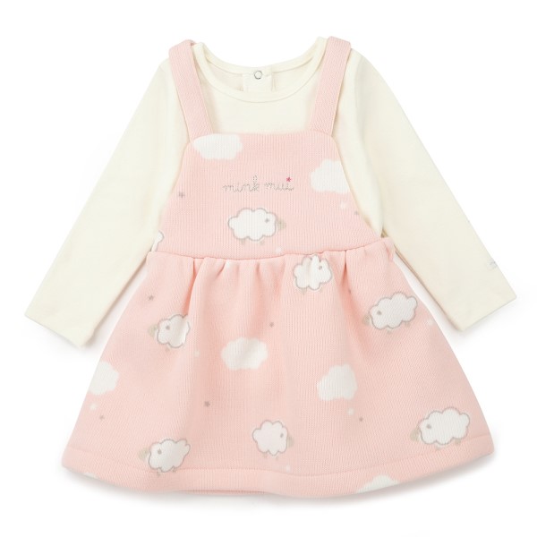 백기모가 되어있는 니트저지 소재르를 활용한 점프스커트와 따뜻한 티셔츠가 SET인 아이템입니다.