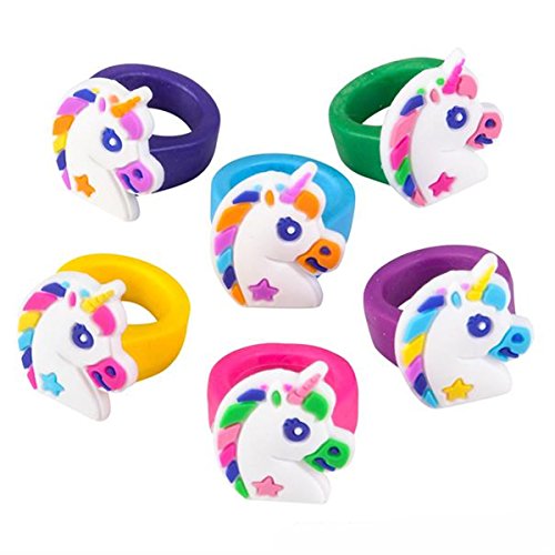 -. Feature : 36+ Piece Set of Unicorn fairytale or fantasy themed jewelry including: / 12 TRANSLUCENT UNICORN NECKLACES. This whimsical unicorn jewelry is fit for a P.R.Incess. Each necklace is nicely detailed and made of plastic with a 22" monochrome twine strand. You will get 4 assorted colors including purple, green, red and blue. Each necklace comes individually wrapped. Perfect for treat bags. / 12 SILICONE BRACELETS. 7.75" each. The perfect party favor for any girl's birthday, these bracelets will be a huge hit! Great jewelry for dress up, pretend play or costume accessories! 4 assorted colors. / 12 RUBBER UNICORN RINGS. A fun fashion P.R.Ize for P.R.Incess parties, birthday celebrations, and carnivals. Soft, rubbery texture. 1" each. Assorted colors. / 1 SECRET BONUS BAG. This bag includes a surP.R.Ise unique toy or toys with a unicorn theme. The bonus bag can be a door P.R.Ize, a present for the birthday girl or boy, or an award for the winner of a unicorn themed game. Graphics by Kristi W Design.