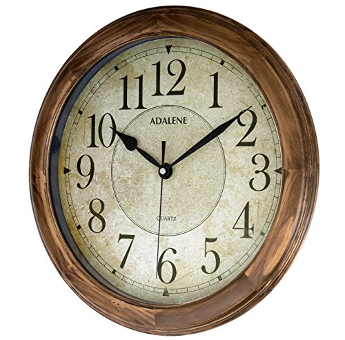 -. Title : Adalene 14-Inch Large Wall Clock Decorative Living Room Modern - Battery Operated Quartz Analog Movement Silent Wall Clock For Home - Round Beige Dial, Arabic Numerals Wood Wall Clock Non Ticking