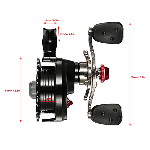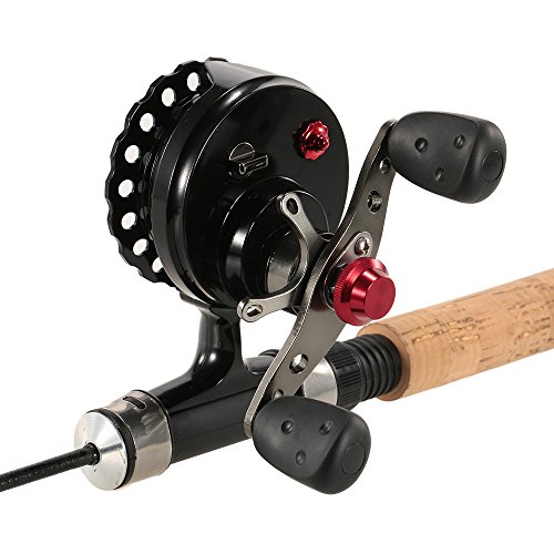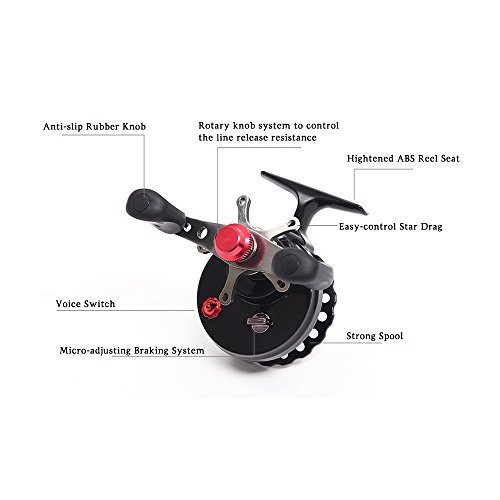 -. Feature : High strength ABS construction for high durability and rigidity. Aluminum alloy handle with rubber snob for easy operation. / Stainless steel central shaft greased for remarkable smoothness. With a star drag system and one releasing clutch button. / Rotary knob system to control the line release resistance. Refined appearance, no wobble, no side play, smooth and easy to control. / Excellent machined brass oscillation gear with high engagement. Cast with clear and melodious voice When you turn on the voice switch. / Wonderful for ice fishing, raft fishing, fly fishing, etc..