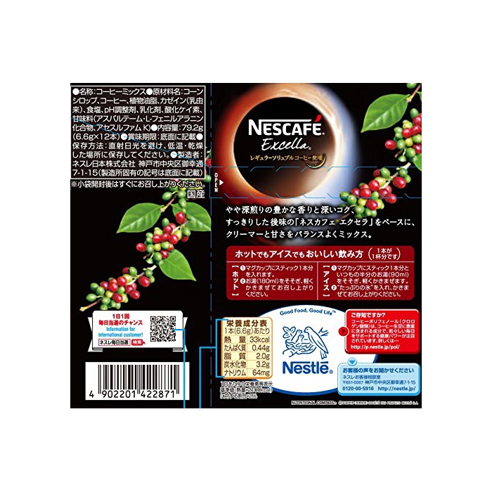 원본상품명: ネスカフェ エクセラ スティックコヒ 12P×6箱