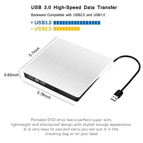 ◆SLEEK AND SLIM DESIGN: Embedded cable design, made with premium wire drawing material, enough fashionable and scratch-proof exterior. This CD/DVD driver is slim, lightweight, compact, portable.