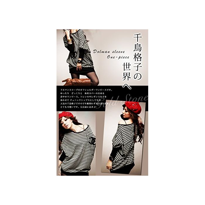 원본상품명: (Goldjapan)ゴルドジャパン 大きいサイズ 大きいサイズ レディス ドルマンスリブ 千鳥柄 オフショルダ チュニック ワンピス お呼ばれ 型カバ