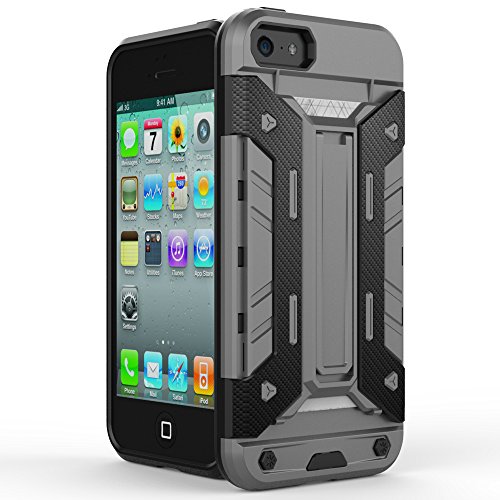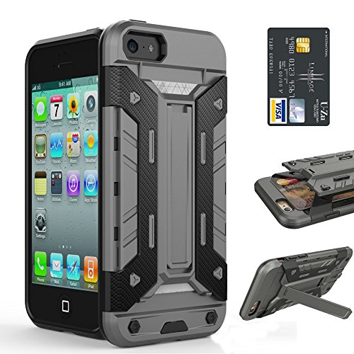 iPhone 5S Card Case,LITOYA Card Holder Heavy Duty Armor Shockproof Protection Case Cover for Apple iPhone 5S/ SE/ 5 with Built-in Kickstand(Gray)