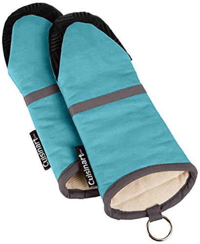 Cuisinart Oven Mitt with Non-Slip Silicone Grip, Heat Resistant to 500° F, Aqua Blue, 2-Pack