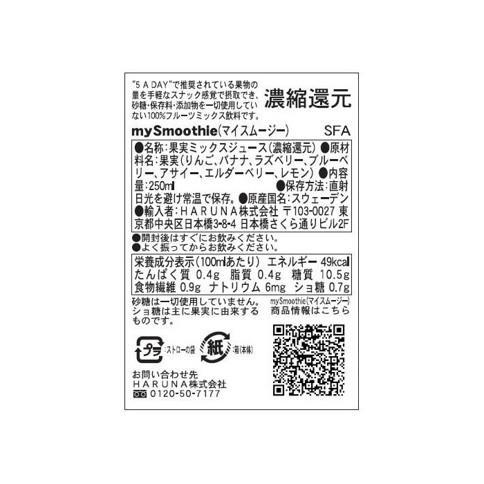 원본상품명: マイスムジ スパフルツ アサイ 250ml×12本