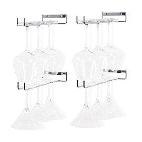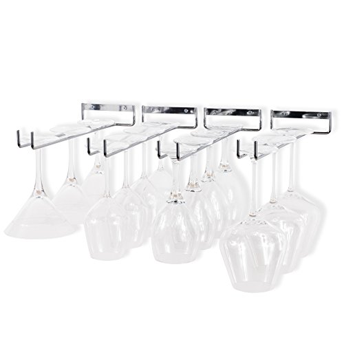 WALLNITURE Stemware Wine Glass Rack Wall Mount Steel Chrome Finish 15 Inch Set of 4