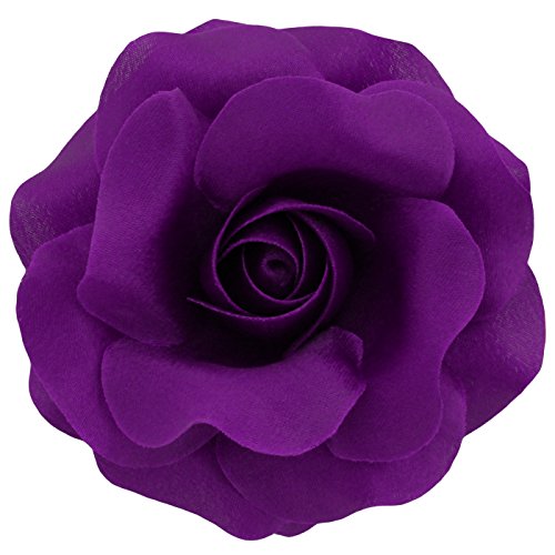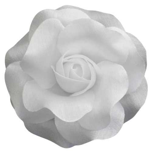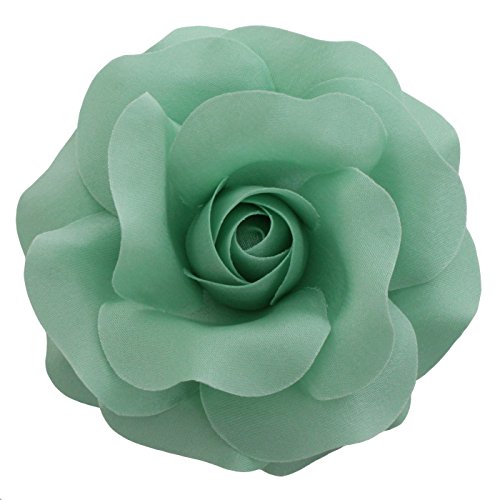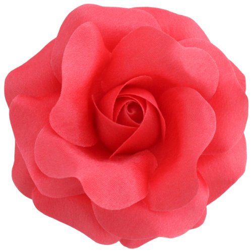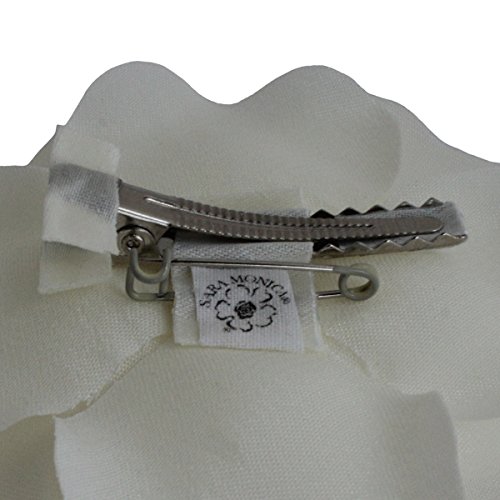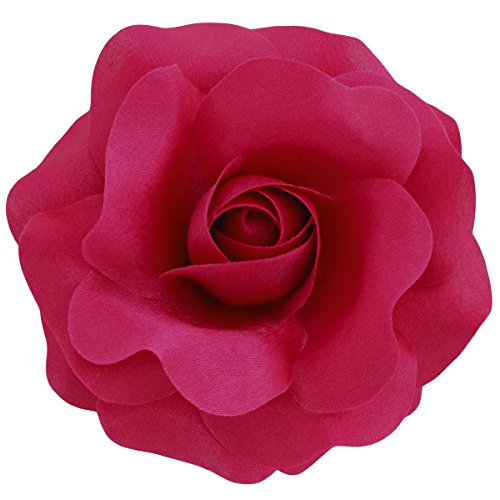 HANDMADE IN THE USA: These roses are entirely handmade, starting with the preparation of the fabric, by a small team of artisans in the studio of Sara Monica Flower Crafts in Dunellen, New Jersey. They are made from a variety of satin fabrics and are approximately 3.75 inches in diameter (9.5 cm in diameter). Each flower has a combination brooch pin and hair clip backing. They can be clipped to hair, belts, ribbons on hats, handbags, headbands or pinned to thin garments such as shirts, thin coats, dresses, etc... (Clip on thicker things, pin on thinner things) Be creative.Feature