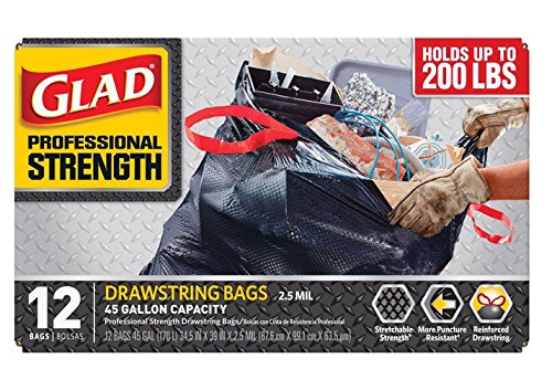 Studio : No Publisher : No Product Description Highlights:Size: 34.5" x 39"Capacity: 45 GallonMaterial: PlasticColor: BlackClosure Type: DrawstringThickness: 2.5 milHolds up to 200 lbs.Stretchable strengthMore puncture resistantReinforced drawstringNumber in Package: 12 Bags 0