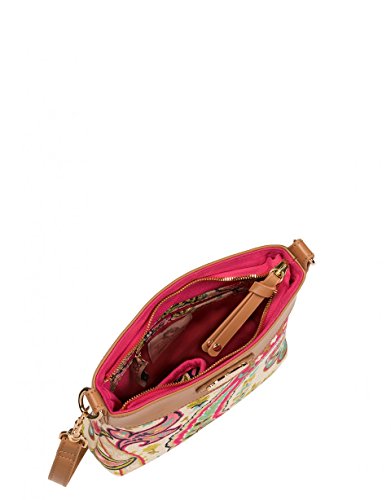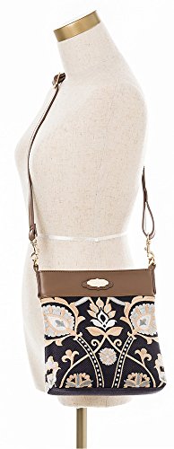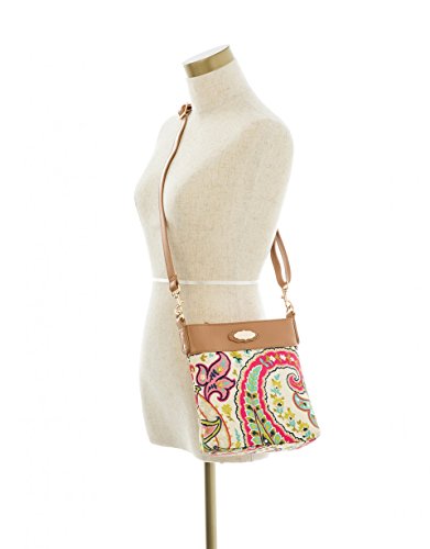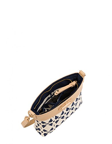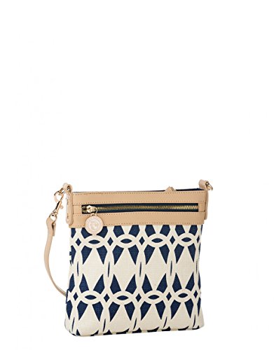 -. Feature : Signature linen with leather accents -Leather mounted gold tone logo plate / Removable shoulder strap with length adjustment / 2 interior open pockets -Interior zip pocket / Height: 9" -Depth: 2.25" -Width: 9" / Exterior zip pocket