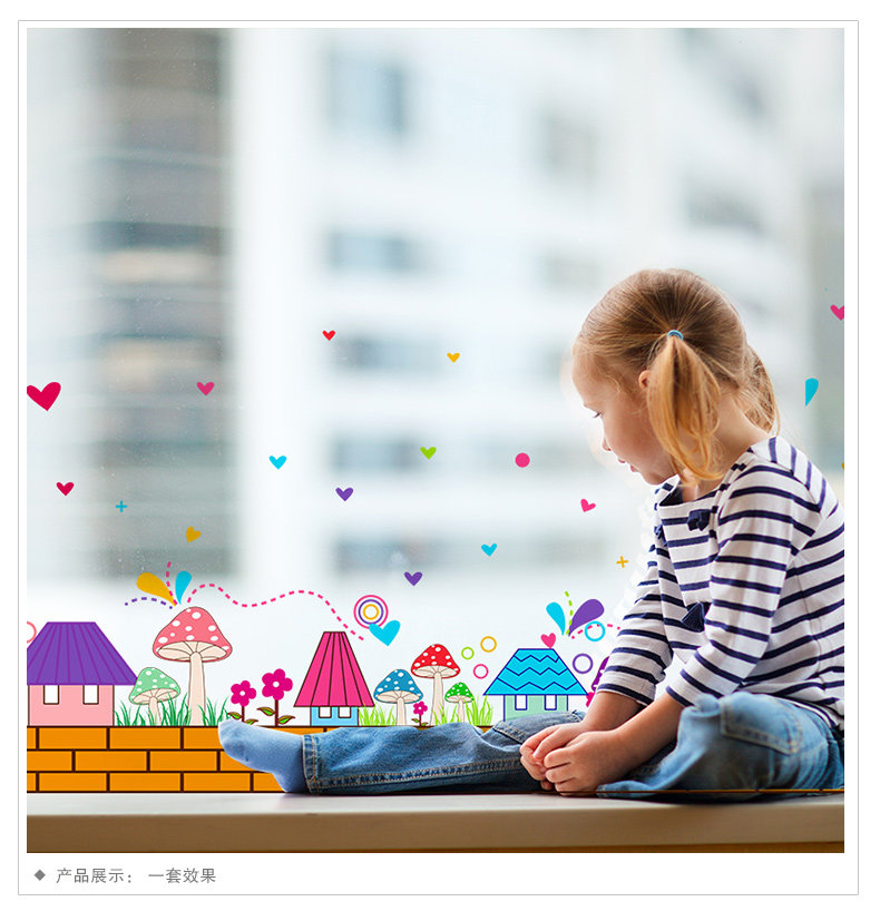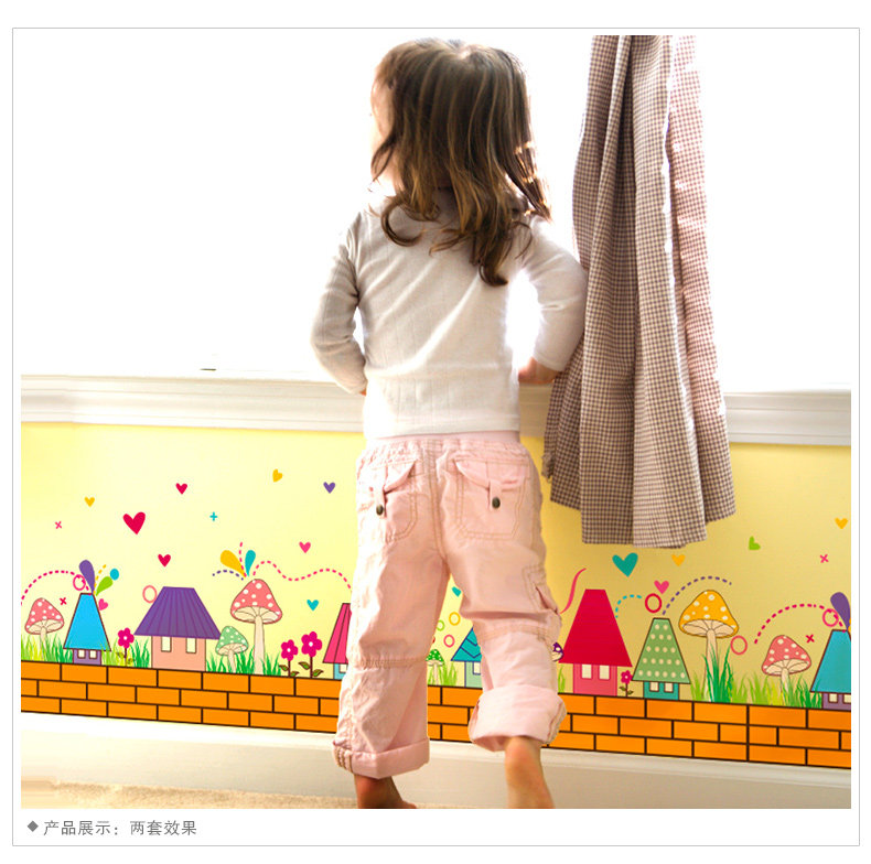 可移除墙贴纸贴画幼儿园儿童房间墙壁装饰卡通蘑菇小屋腰线踢脚线