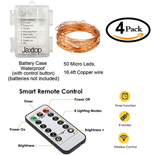 - Terrific Decorating & Crafting Tools - Get 4 Sets of daylight white battery powered Fairy Lights,each string light is with 16.4 feet moldable copper wire and 50pcs glowing micro Leds and one control remote. You can use them to decorate your wedding ceremony, Halloween party; DIY unique dinner party centerpiece;apply for your crafting project;making twinkling bonsai/plants arrangement.