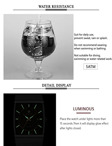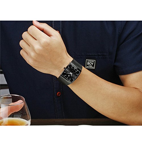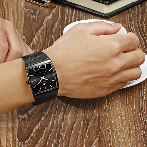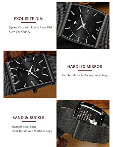 WWOOR men's stainless steel mesh slim luxury fashion quartz watch with luminous hour display rectangle dial unique design vintage watches