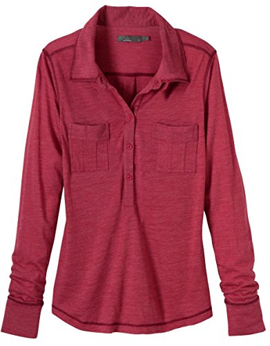 Lightweight, heather wool blend jersey Tonal coverstitch at hem, sleeve cuff, shoulder, back yoke, and placket seams Standard fit Brand : prAna Item model num : W2BESH314 MPN(PartNumber) : W2BESH314 EAN : 0883741894516