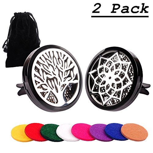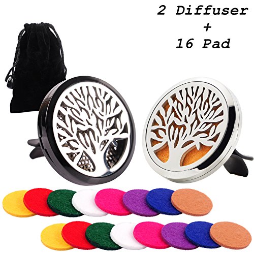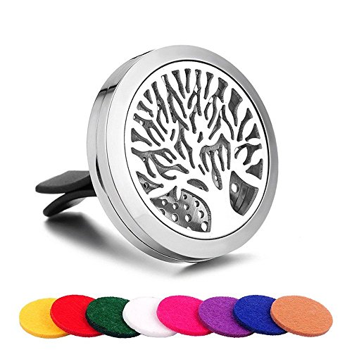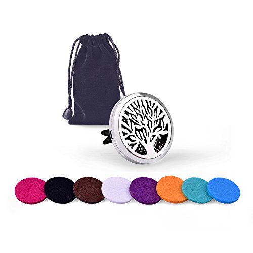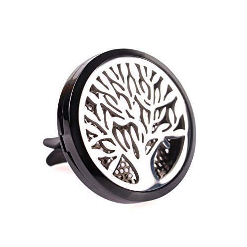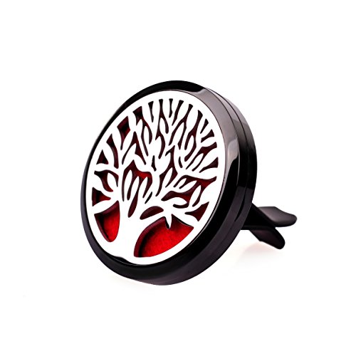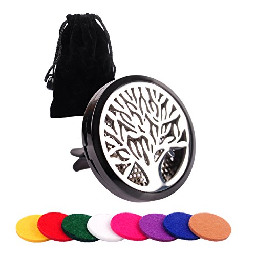 Premium Car Aromatherapy Essential Oil Diffuser, Remove Smoke and Bad Odors, COSCOD Hypo-Allergenic Stainless Steel Auto Perfume Diffuser Locket Pendant With Carry Pouch & 8 Washable Pads Black Tree