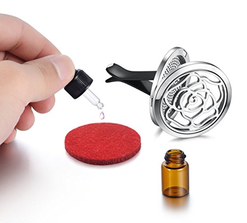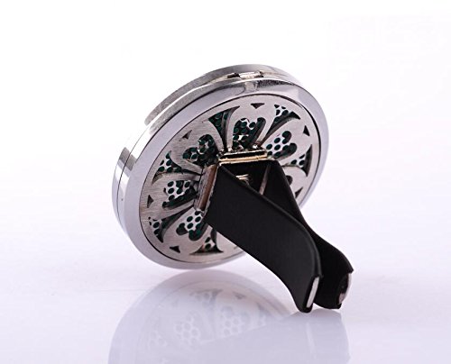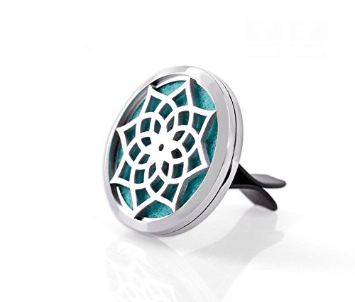 Aromatherapy Car Essential Oil Diffuser, COSCOD Perfect Idea for Auto Aroma Pendant Hypo-Allergenic Stainless Steel Locket With Vent Clip For Aromatherapy (Flower)