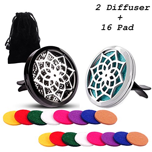 Car Air Freshener Aromatherapy Essential Oil Diffuser Vent Clip, COSCOD [2-Pack] with 16 Refill Pads Essential Oil Car Perfume Charm, Improve Air Quality Air Purifier - [Piano black/Bright silver]