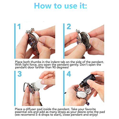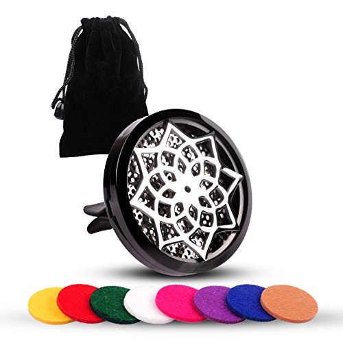 Premium Car Aromatherapy Essential Oil Diffuser, COSCOD Hypo-Allergenic Stainless Steel Auto Perfume Diffuser Locket Pendant With Carry Pouch & 8 Washable Pads