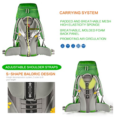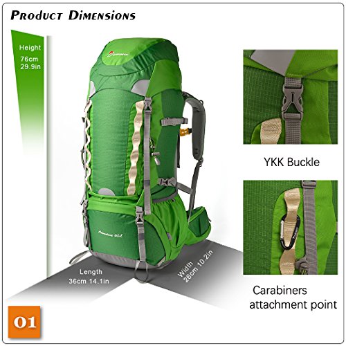 - Feature : 60L (3,660cu in) High-capacity professional backpack for expedition, designed to be comfortable and functionally versatile / Material: Terylene, Ripstop nylon; Water-resistant / Super carry-CR adjustable weight decomposition system, could be adjustable for 3 sizes, high elasticity sponge with Airflow channels keep your back cool and dry / Multiple pockets keeps valuables separate and organized / Multiple attachment and straps for hanging tools, trekking pole, tents, sleeping bags, and other items