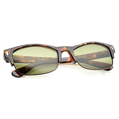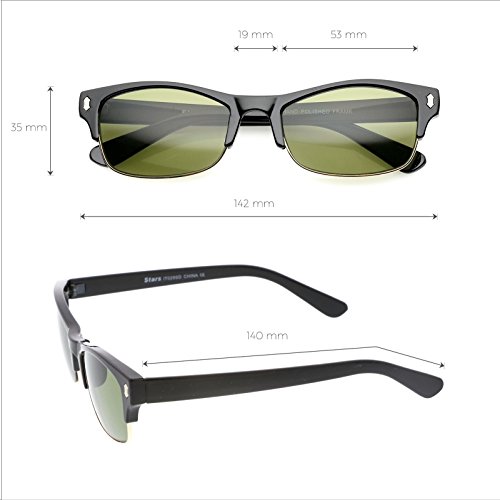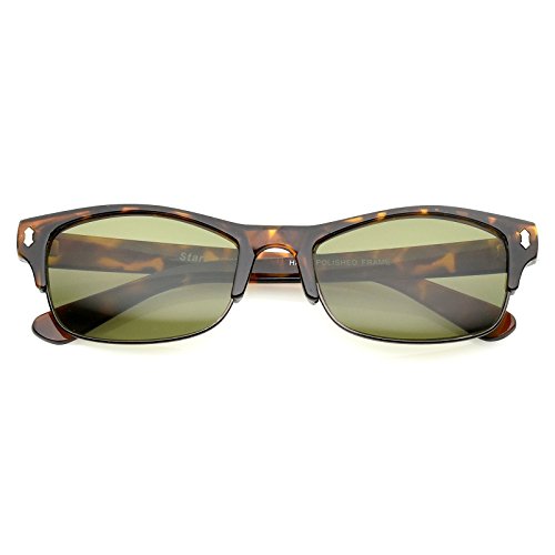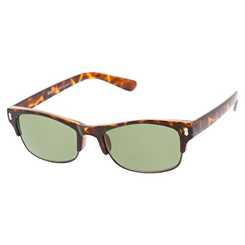 DetailsA classic design that add sophisticated flair, these half frame sunglasses feature rectangle shaped lenses with metal trimming. Horn rimmed detail and metal rivet accents complete versatile half frame sunglasses. Made with a plastic and metal frame, metal hinges, and 100% UV protected lenses.