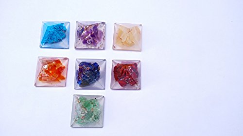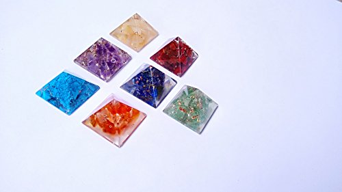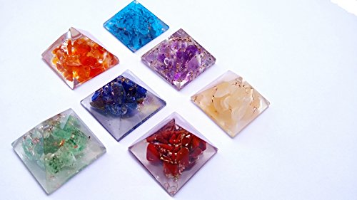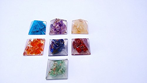 18 mm Set of 7 Chakra Orgone Pyramid Set -- 7 (Seven) Chakra Orgone Stone Pyarmid - Metaphysical - Reiki