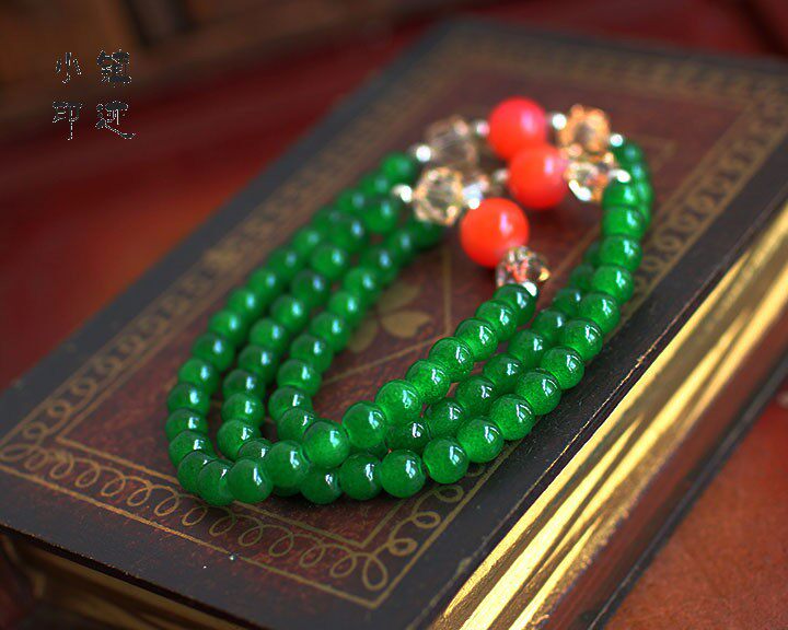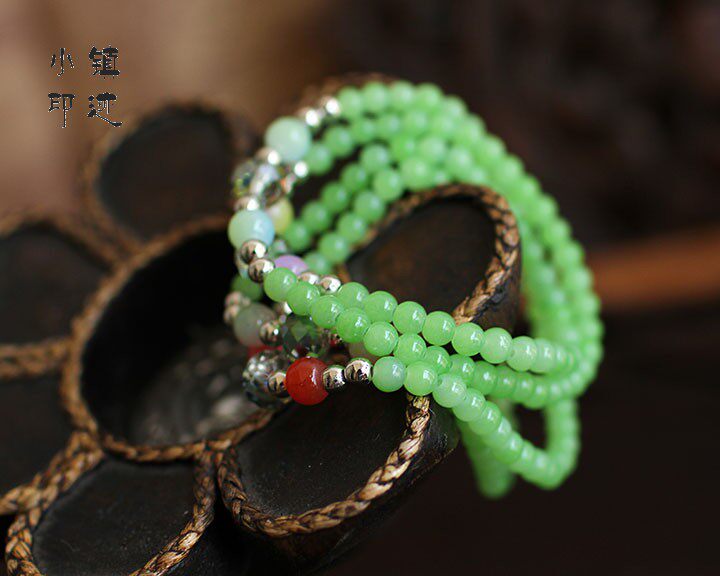 Specifications: Bracelet fold about 34cm, green agate diameter of about 4mm, 3-4 ring can be worn around the hand