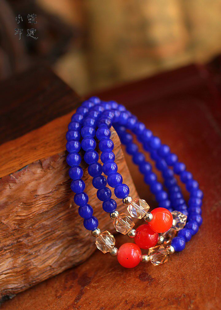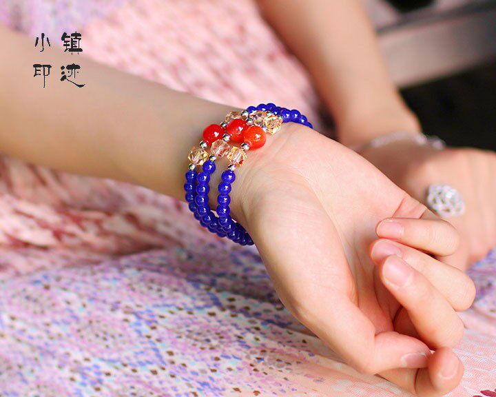 Specifications: Bracelet fold about 27cm, blue agate diameter of about 5mm, red agate diameter of about 9mm, can be worn around the hand 3 laps