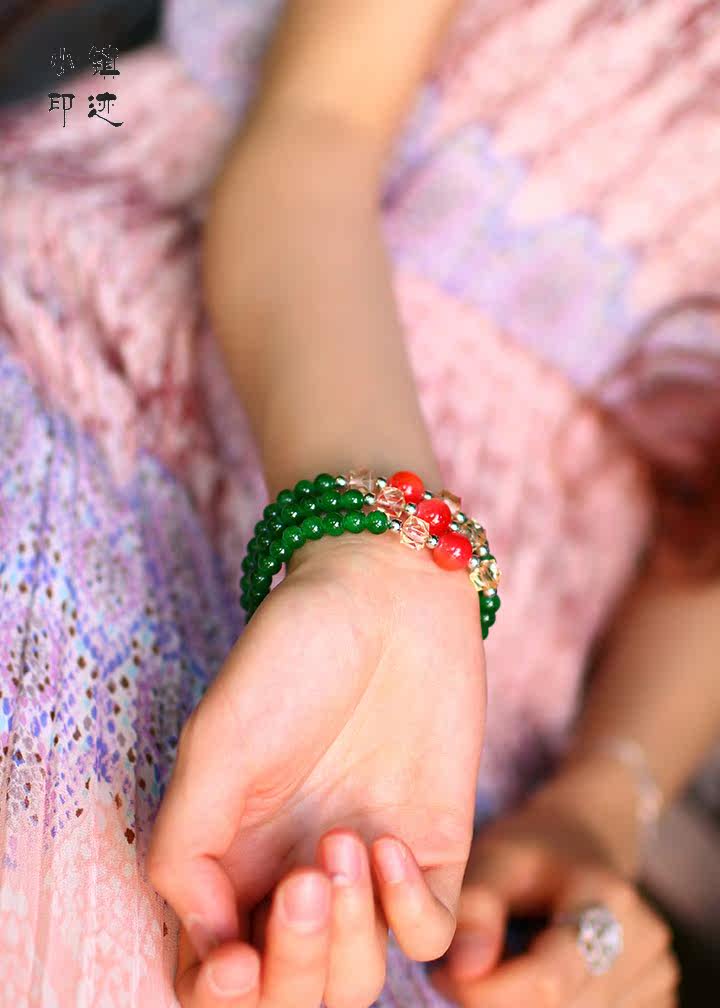 Specifications: Bracelet fold about 27cm, green agate diameter of about 5mm, red agate diameter of about 9mm, can be worn around the hand 3 laps