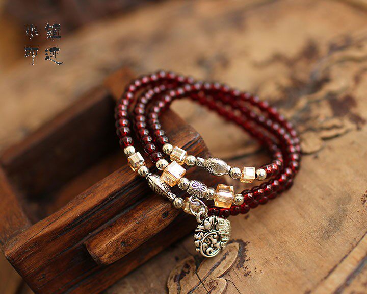 Material: synthetic garnet, artificial crystal, Tibetan silver accessories