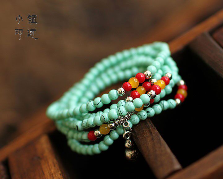 Specifications: Bracelet fold about 25cm, turquoise diameter of about 4mm, possession Redstone diameter of about 4mm, 2-3 ring can be worn around the hand