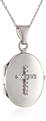 Italian Sterling Silver Reversible Red Oval and Cubic Zirconia Cross Locket Necklace, 18"