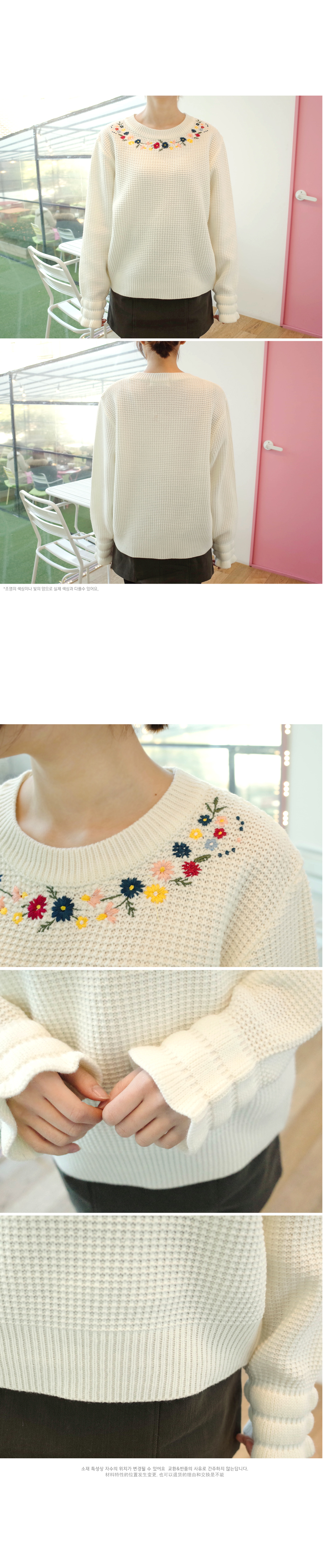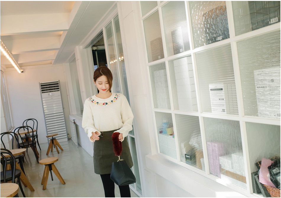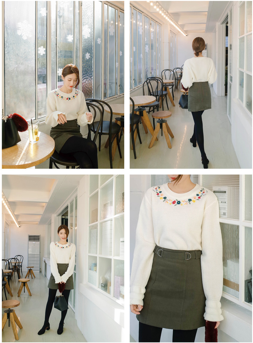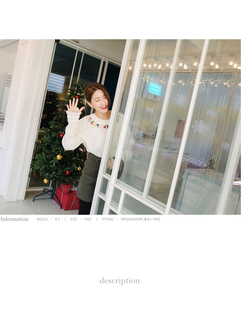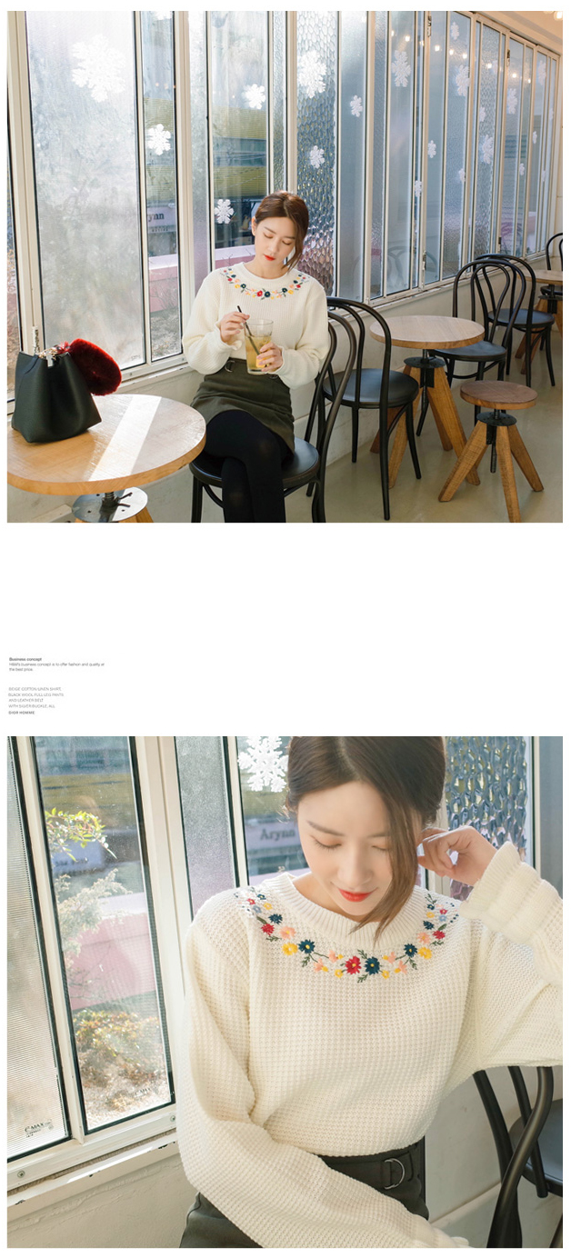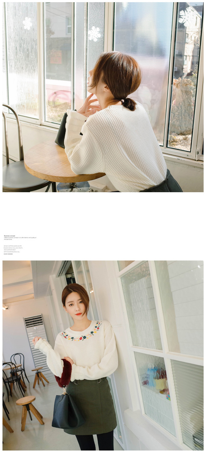 ネックラインに花柄の刺繍をあしらい、レディムード漂う仕上がりのプルオーバー。