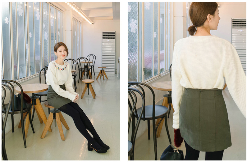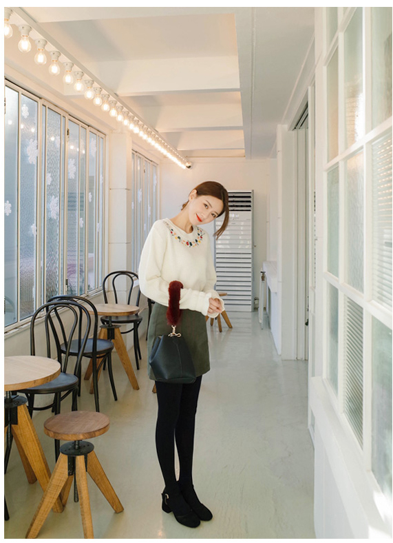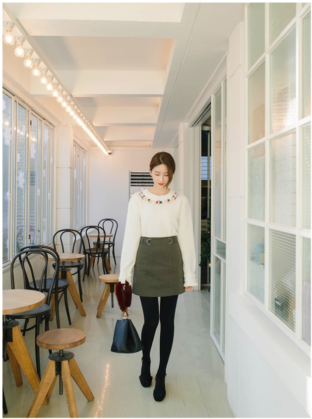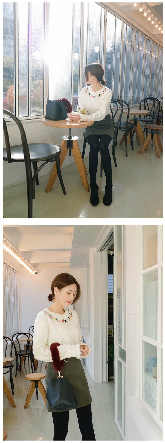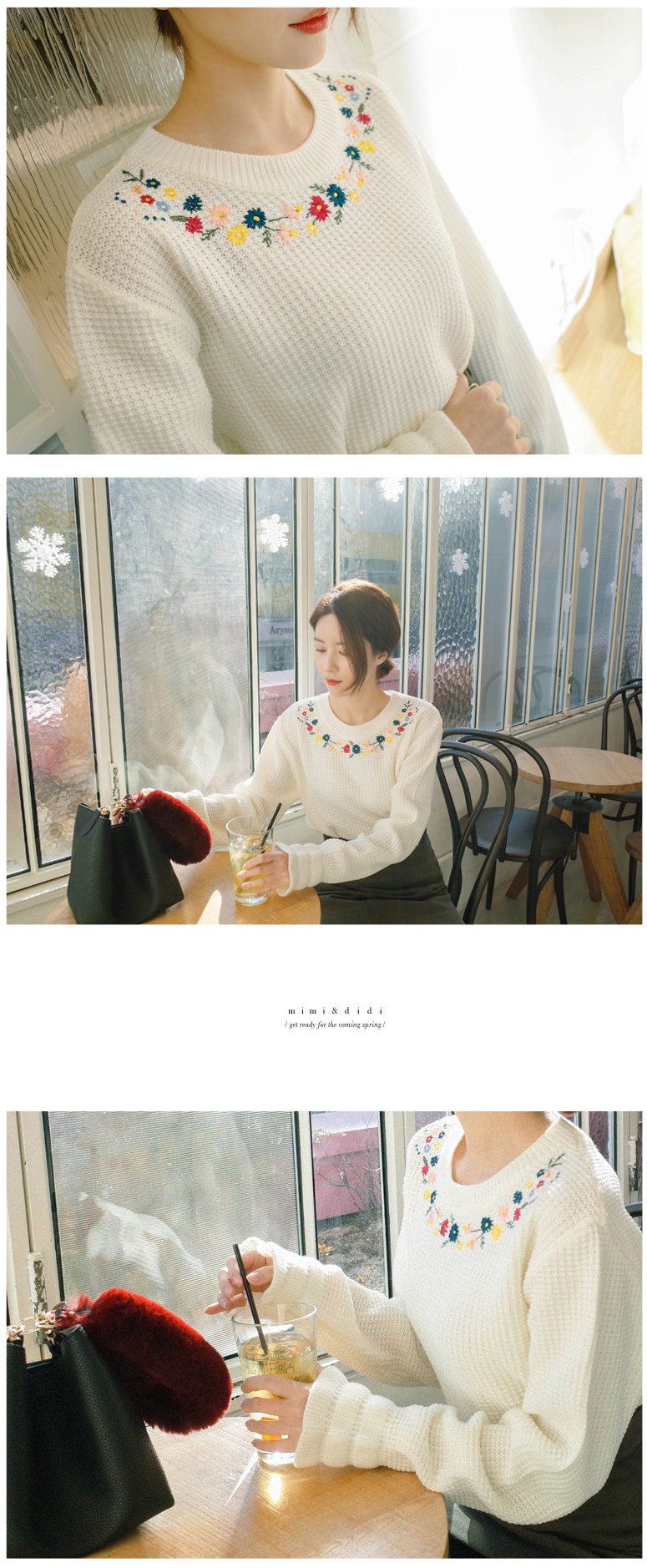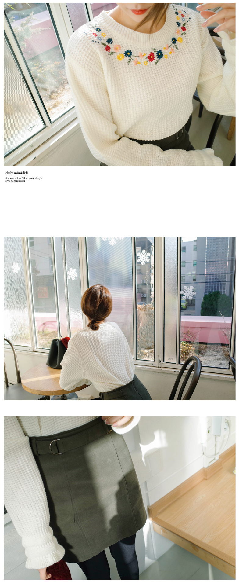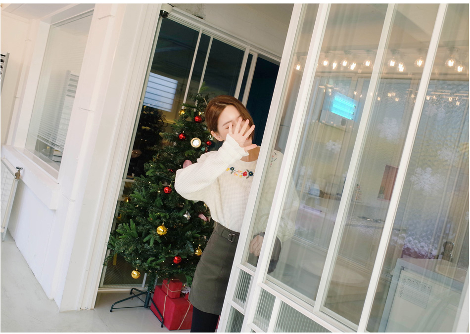 ネックラインに花柄の刺繍をあしらい、レディムード漂う仕上がりのプルオーバー。