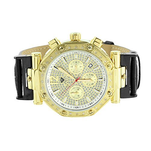 -. Title : King Aqua Master Gold Stainless Steel Leather Band Real Diamond Watch