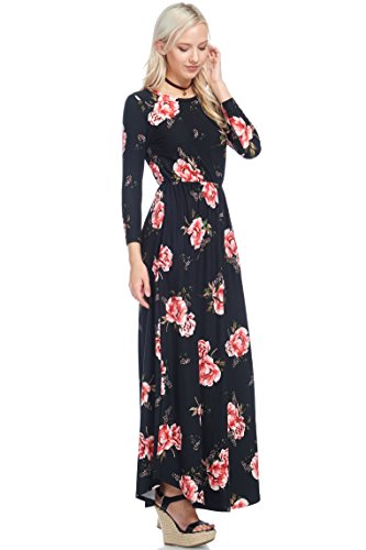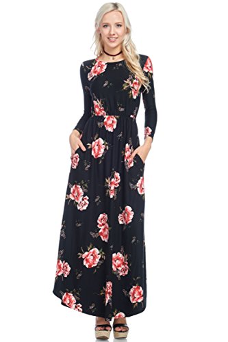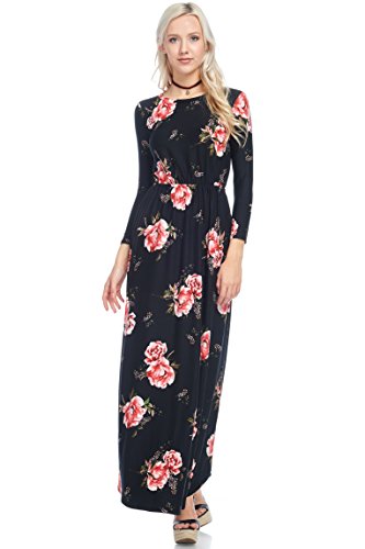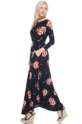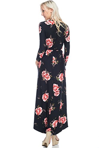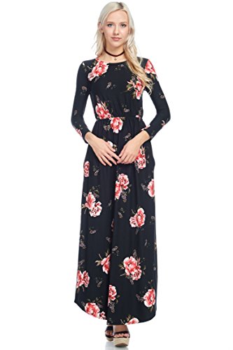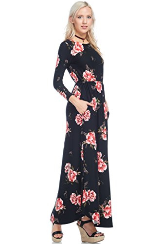 Title : Reborn J Floral Maxi Dress With Pockets, Long Sleeve (Small, Black/Burgundy)