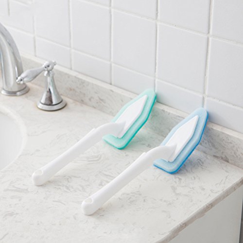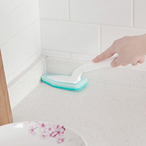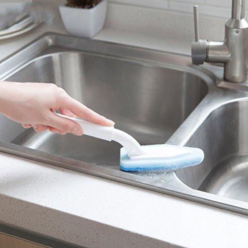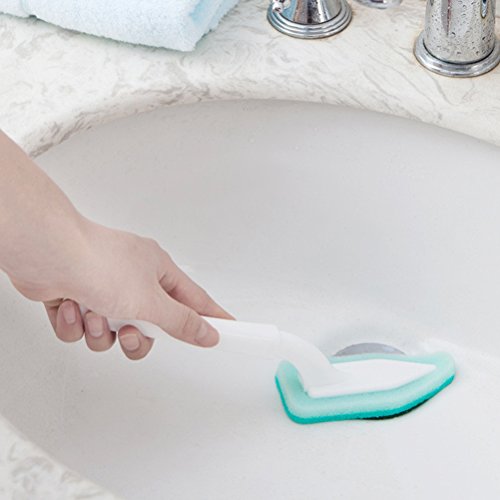 OUNONA Cleaning Brush Triangle Head Scrubber Spone household tool kit with Long Handle for Bathroom and Kitchen(Blue)