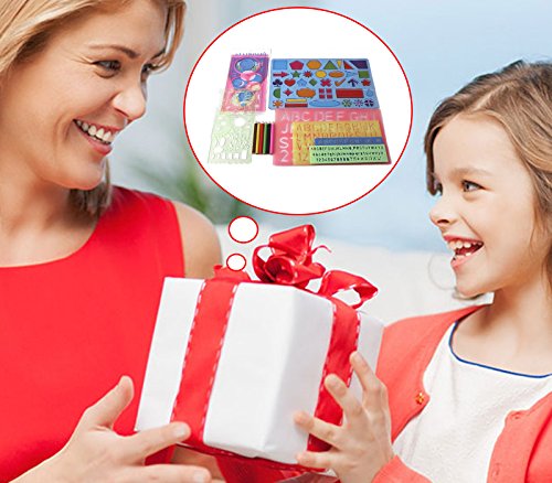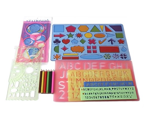 Stencils Kit for kids–7 Plastic stencils set for kids, Letter Stencil, Alphabet Stencils-Number Stencils, Spirograph for Flower Stencils, Stencils Shapes for children and toddlers+set of pencils(GIFT)