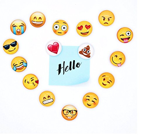 - 15 CUTE AND STYLISH EMOJI DESIGNS ★ Our emoji Refrigerator Magnet design are assorted with adorable emoji facial expression which include cool sunglass, hearty eyes, winky kiss, cheeky tongue, laughing tears, winky eye, cheeky teeth smiley, smiley tongue, winking smile, blushing, angry brow and clueless.