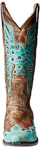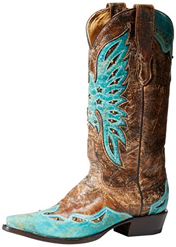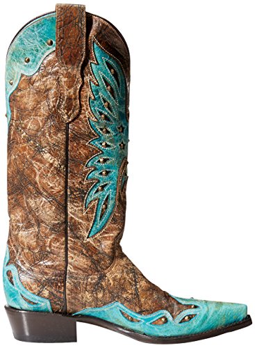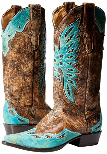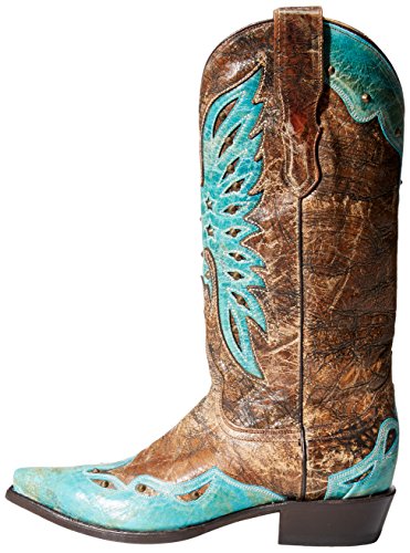 Product DescriptionCrackled brown leather vamp with turquoise wing tip. 13 inch0