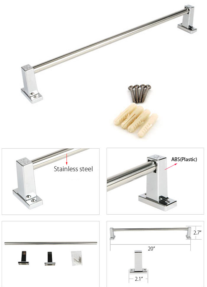 Wall mounted home Bath towel holder rail bar rack stainless steel Chromed 20"