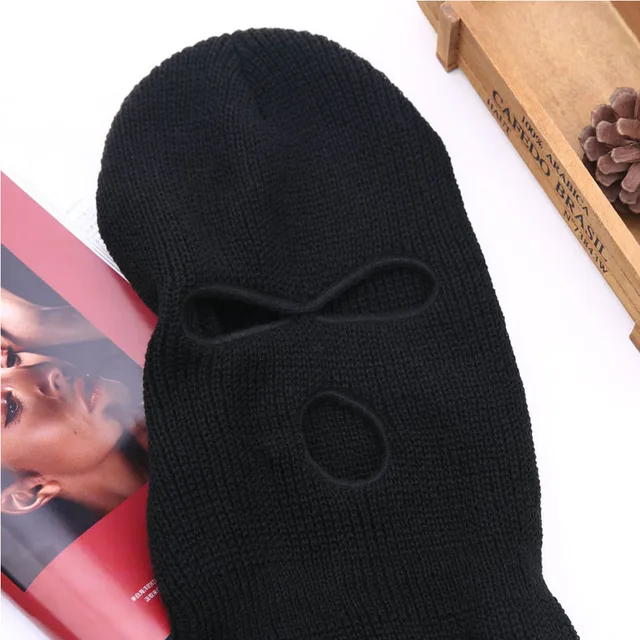 3 구멍 클라 블랙 니트 모자 얼굴 방패 비니 모자 눈 겨울 따뜻한 # U102K #