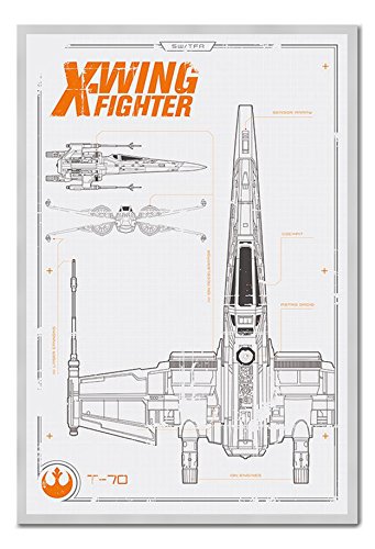 -. Title : Star Wars Episode 7 X Wing Plans Poster Magnetic Notice Board Silver Framed - 96.5 x 66 cms (Approx 38 x 26 inches)