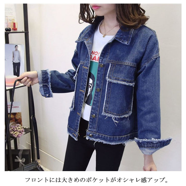 | ゆったりタイプの大人デニムジャケット♪ フロントには大きめのポケットがオシャレ感アップ。クラッシュ加工も周りと差をつけます。少し肩が落ちたシルエットがこなれ感を出してくれ、おしゃれカジュアルなスタイルにぴったり♪シンプルのtシャツの上に羽織るだけで秋コーデが完成できちゃう。 | |