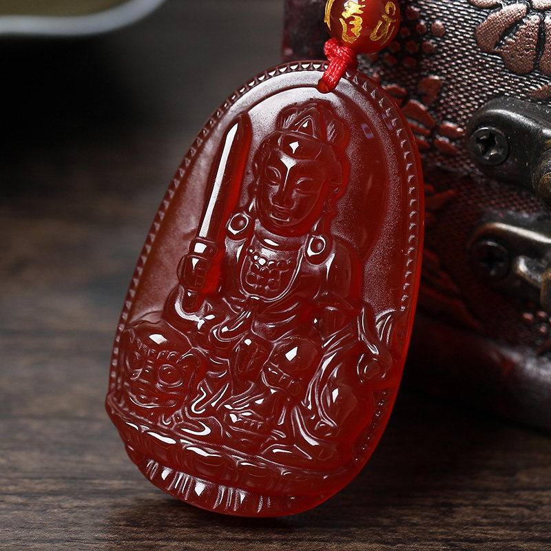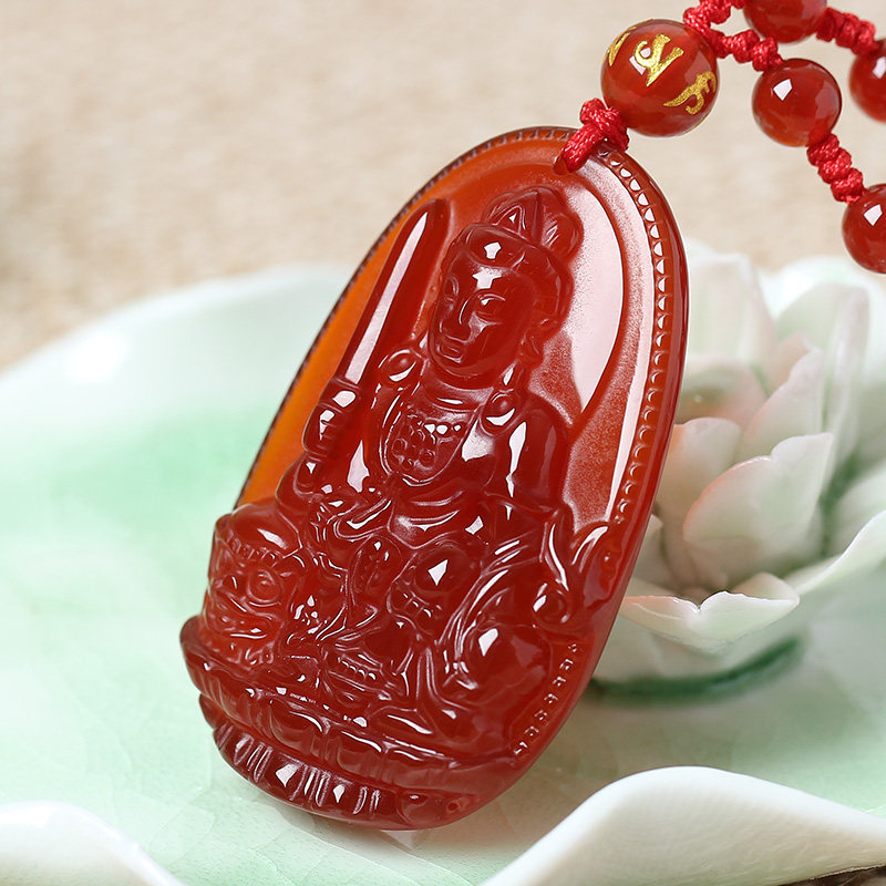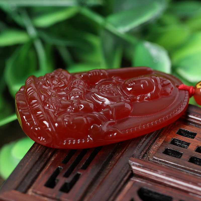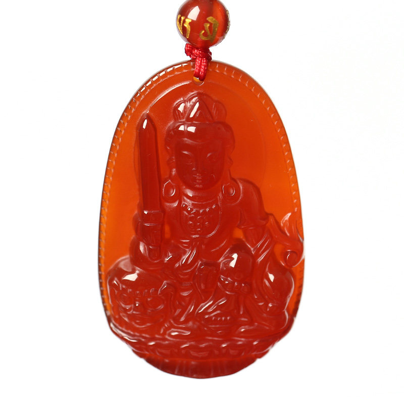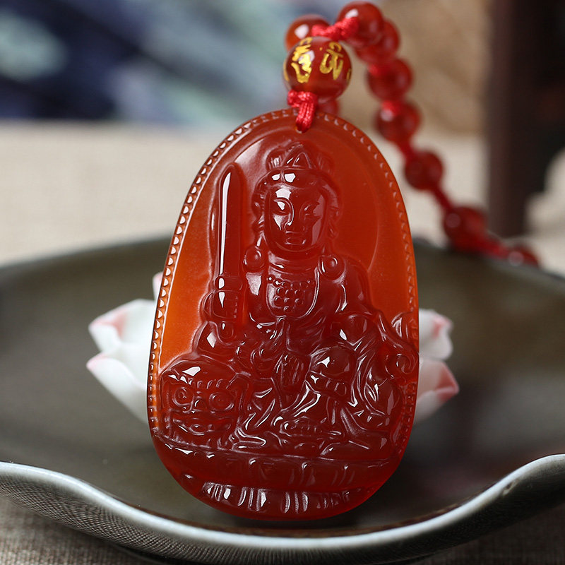 开光天然红玛瑙文殊菩萨十二生肖属兔本命佛守护神吊坠