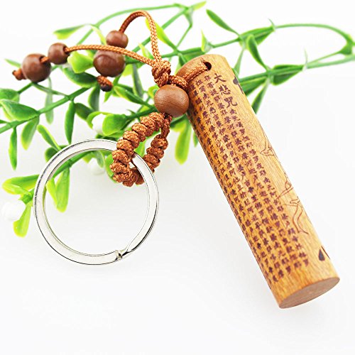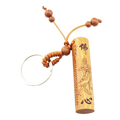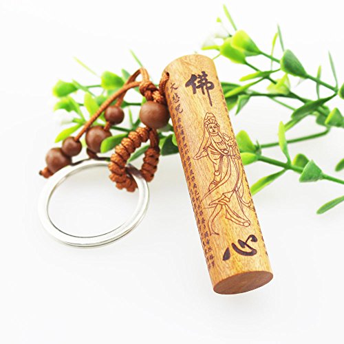 The pendant is Great Compassion Mantra. The keychain is engraved with the Chinese word 'Buddha heart' and the image of Kuan Yin who is a symbol of Chinese guardian angel.